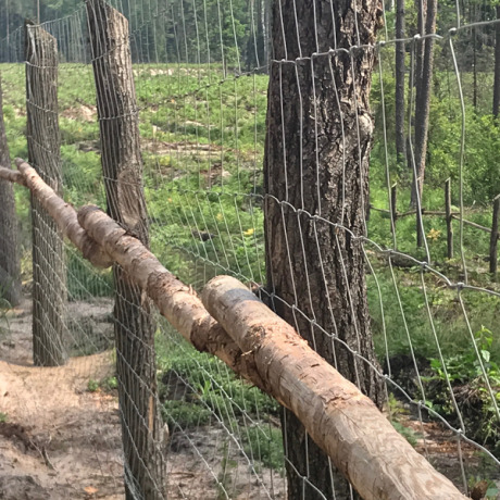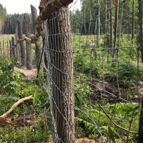 • Az erdei hálót acéloszlopokhoz rögzítő konzolokkal vagy faoszlopokhoz U alakú szögekkel rögzítik. Könnyű, ezért az oszlopok közötti távolság 2 és 5 méter között lehet. A háló különböző típusú oszlopokra történő felszerelését bemutató galéria az Erdei és autópálya kerítések fül alatt érhető el.
