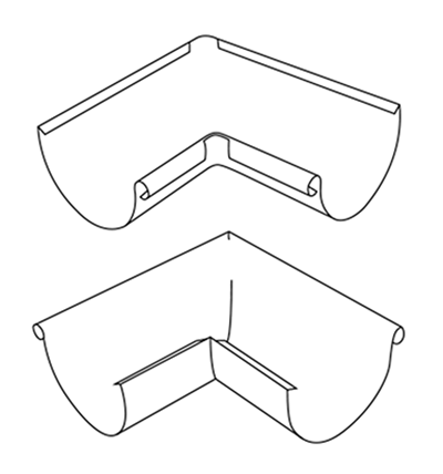 A szegletek biztosítják az ereszcsatornák esztétikus és funkcionális összekötését az épület sarkain. Választékunkban 90°-os standard külső és belső szegletek szerepelnek.