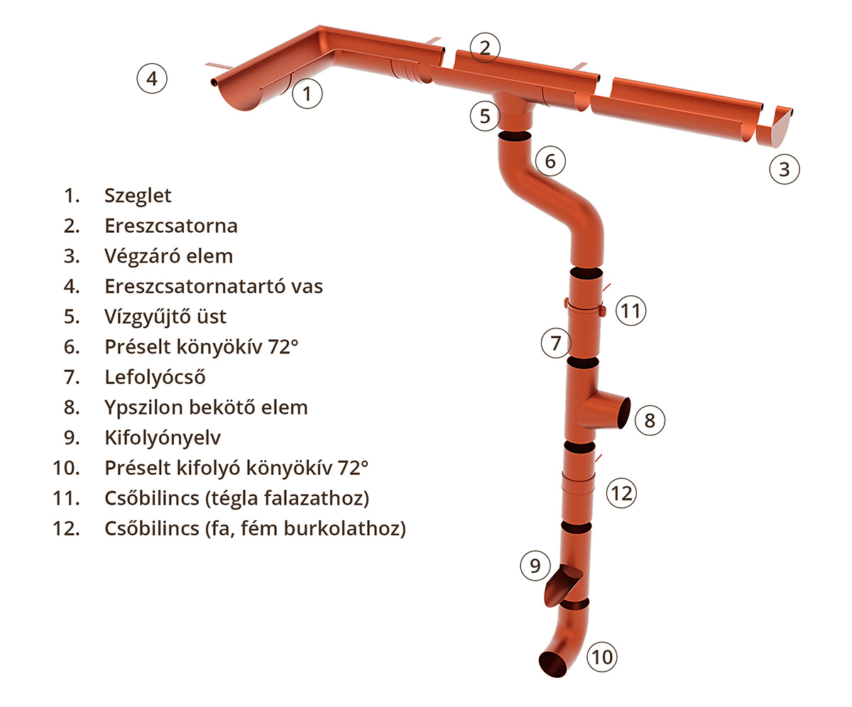 Horganyzott belső peremes ereszcsatorna robbantott ábra: