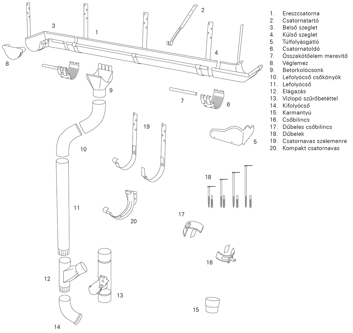 Ez az elem még jobban rögzíti az ereszcsatornát a tetőszerkezethez. Nagy terhelés, pl. hócsuszamlás esetén megelőzi az ereszcsatorna deformálódását ill. leszakadását