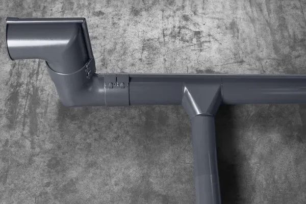 A csatornarendszer kimeneti eleme a kifolyócső, amely elvezeti a vizet a lefolyócsőből. Az ajánlott termék hajlásszöge 63°, átmérője pedig fi = 87 mm.