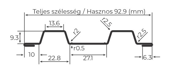 • Alapanyag:Mindkét oldalán poliészterrel védett horganyzott acéllemez