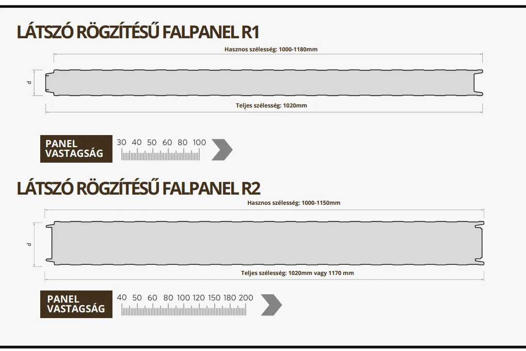 Panel vastagság 40 50 60 80 100 120