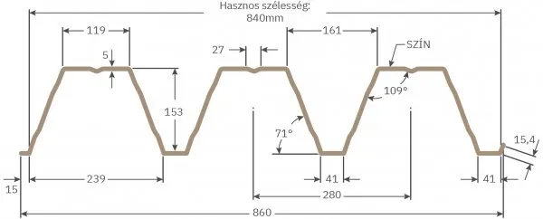 A T153 trapézlemez nagy teherbírással rendelkező szerkezeti profil. Alkalmazható ipari és kereskedelmi épületek teherhordó tető-vagy födém szerkezeteként. 153mm-es bordamagasság nagy fesztávok áthidalását teszi lehetővé, és rendkívül erős merevséget biztosít. Többféle vastagságban elérhető, árazása mennyiségtől függően egyedileg történik.  Anyagvastagság szerint 0,75mm, 1mm, 1,25mm, 1,5mm gyártható.