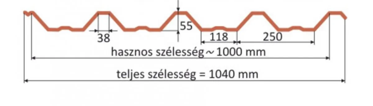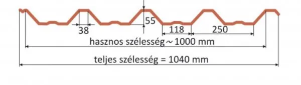 T55 trapézlemez hasznos szélessége 1000mm, teljes szélessége 1040mm. Nagyobb alátámasztások áthidalása esetén is megoldást jelenthet. (1-1,4méter) Bennmaradó zsaluzatként, vagy tető fedésre egyaránt alkalmas. Felhasználását tekintve leginkább ipari kivitelezések közkedvelt lemez héjazata, de nagy segítség lapos tetők fedésénél is. Többféle felületkezeléssel, illetve számos színben elérhető, egyedi gyártási hosszméretben,maximálisan igazodva a kivitelezéshez. Nagyobb mennyiségi igényre egyedi árakat biztosítunk. Árajánlat kéréséhez, vagy bármely kérdés esetén keresse bizalommal értékesítőinket.